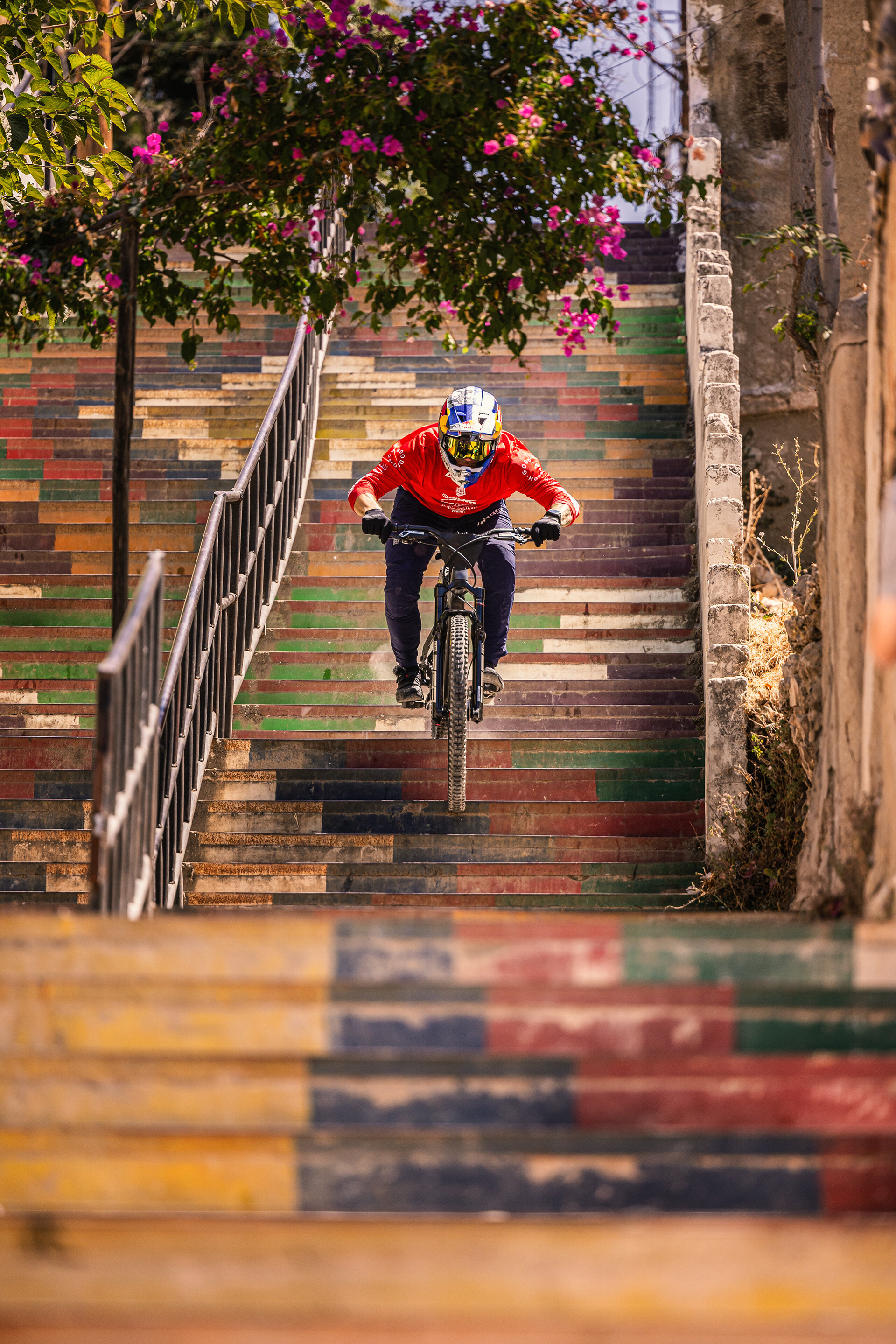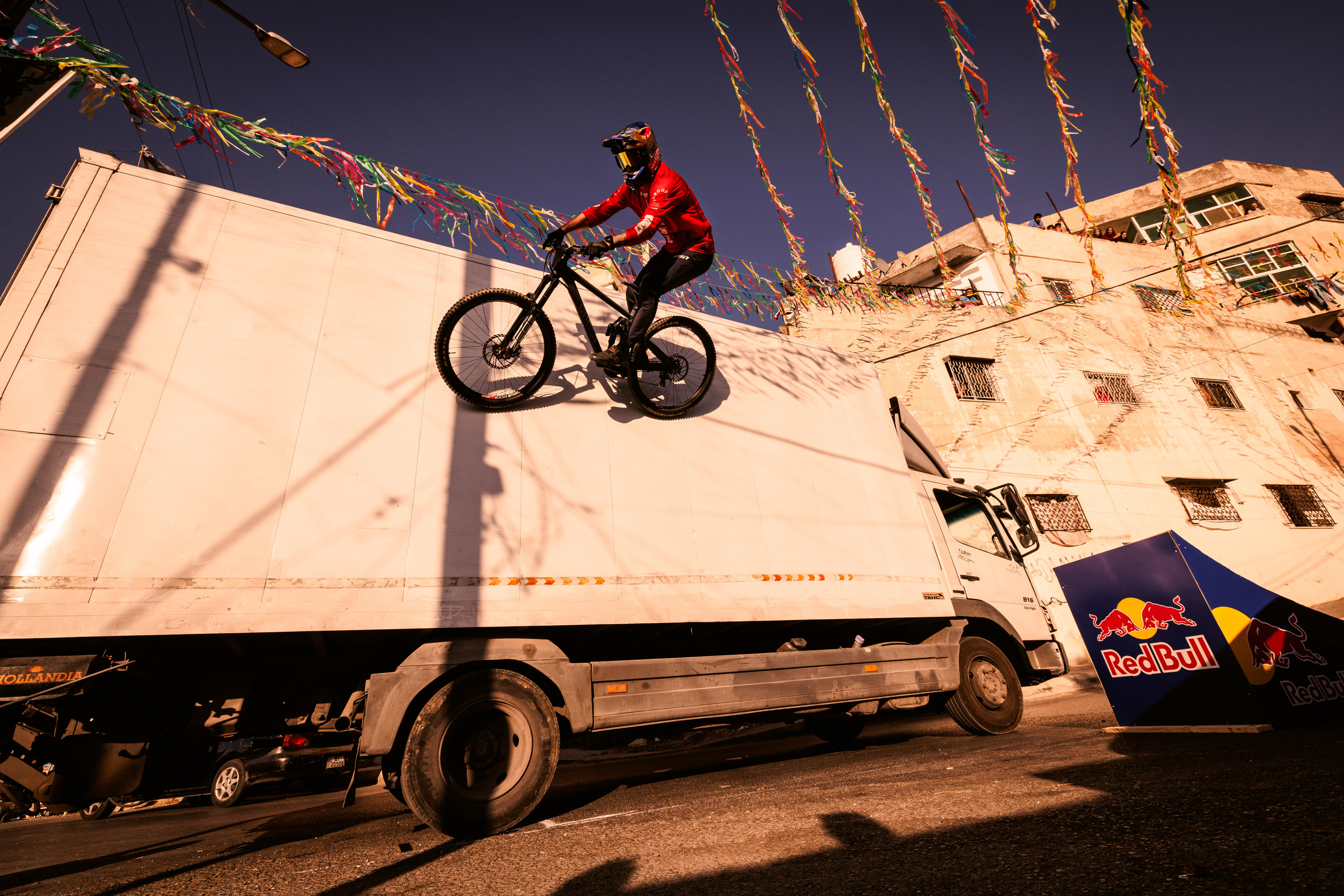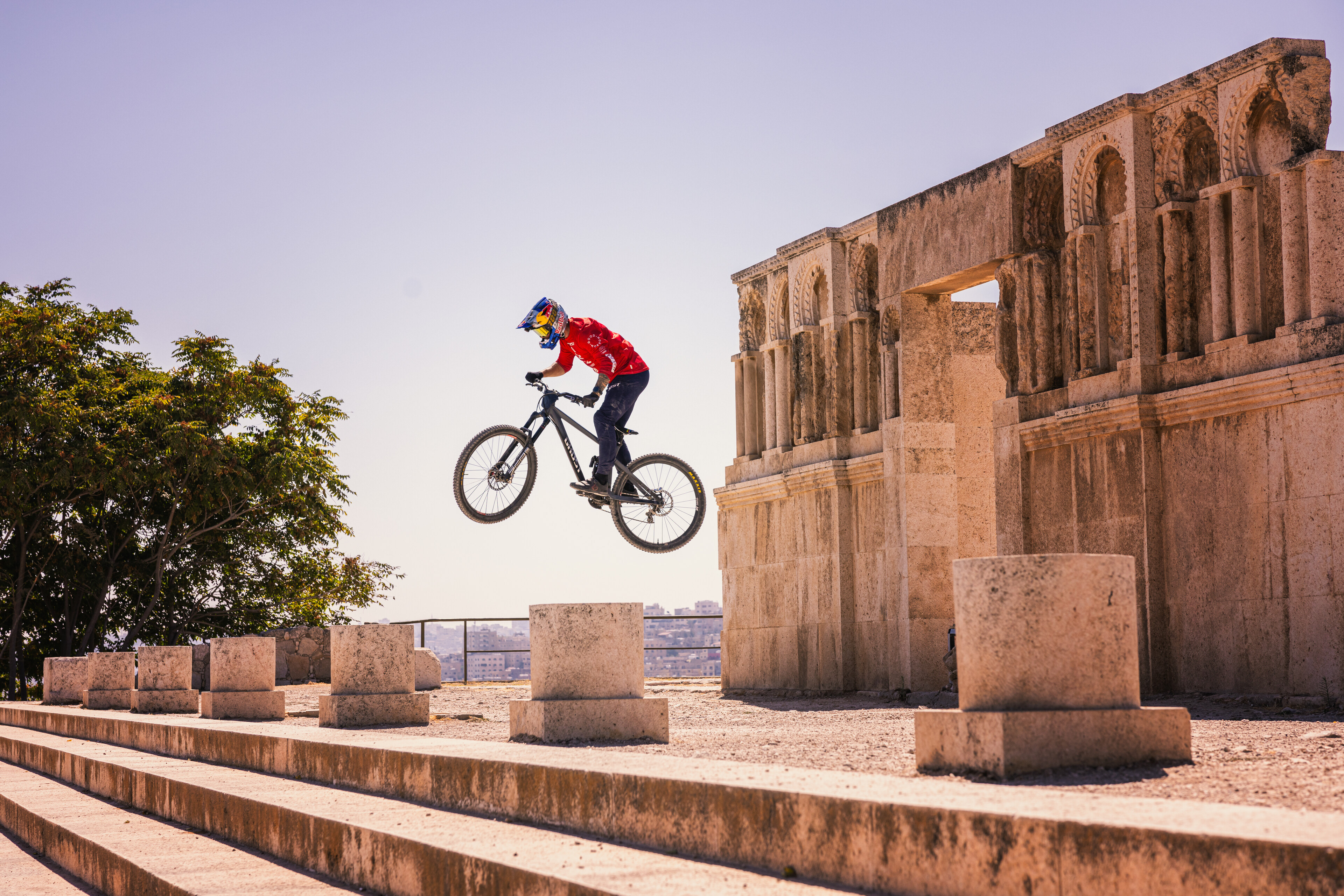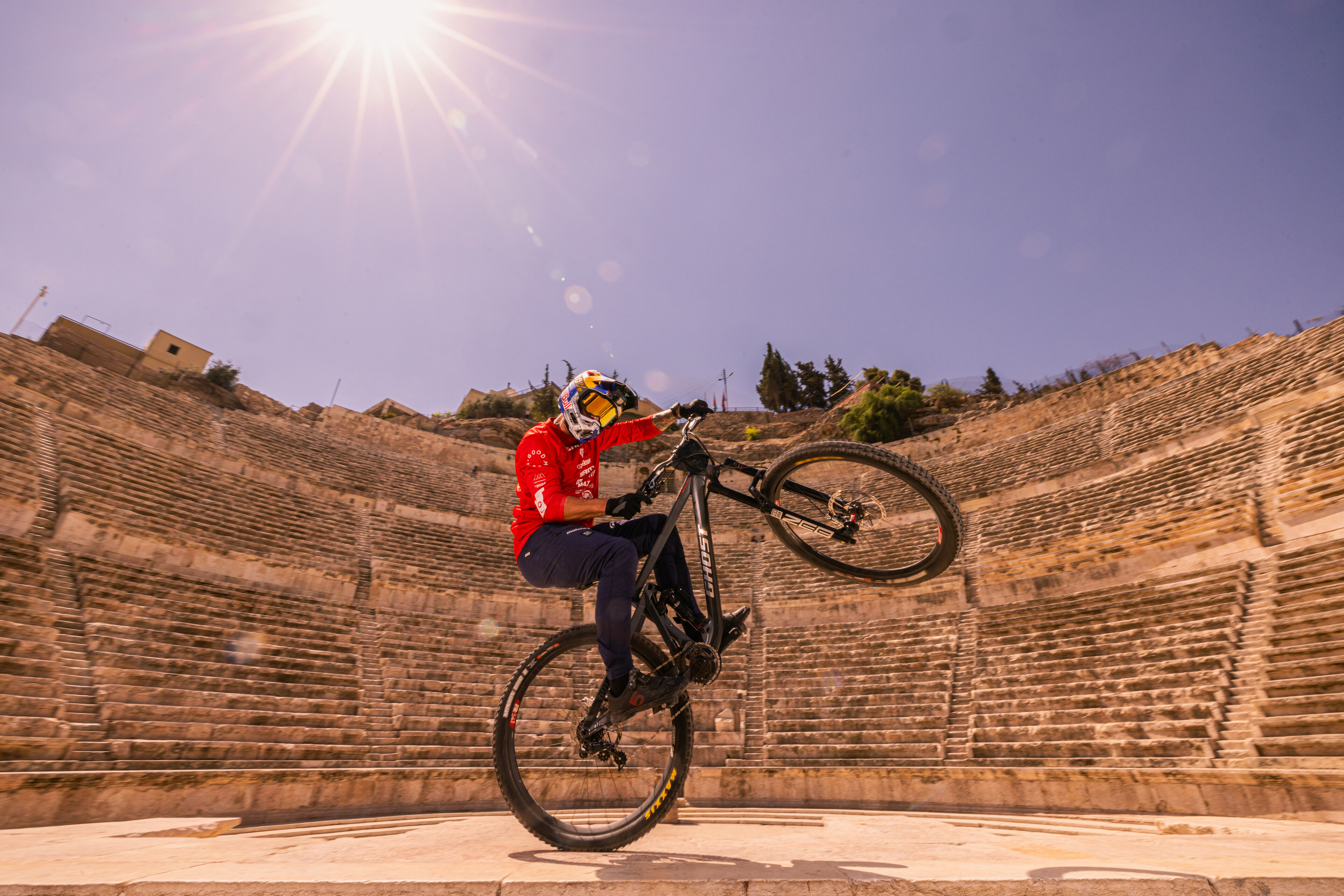 Mountain Bike World Champion Tomáš Slavík bikes around the biggest Obstacles of Amman’s most iconic seven hills.