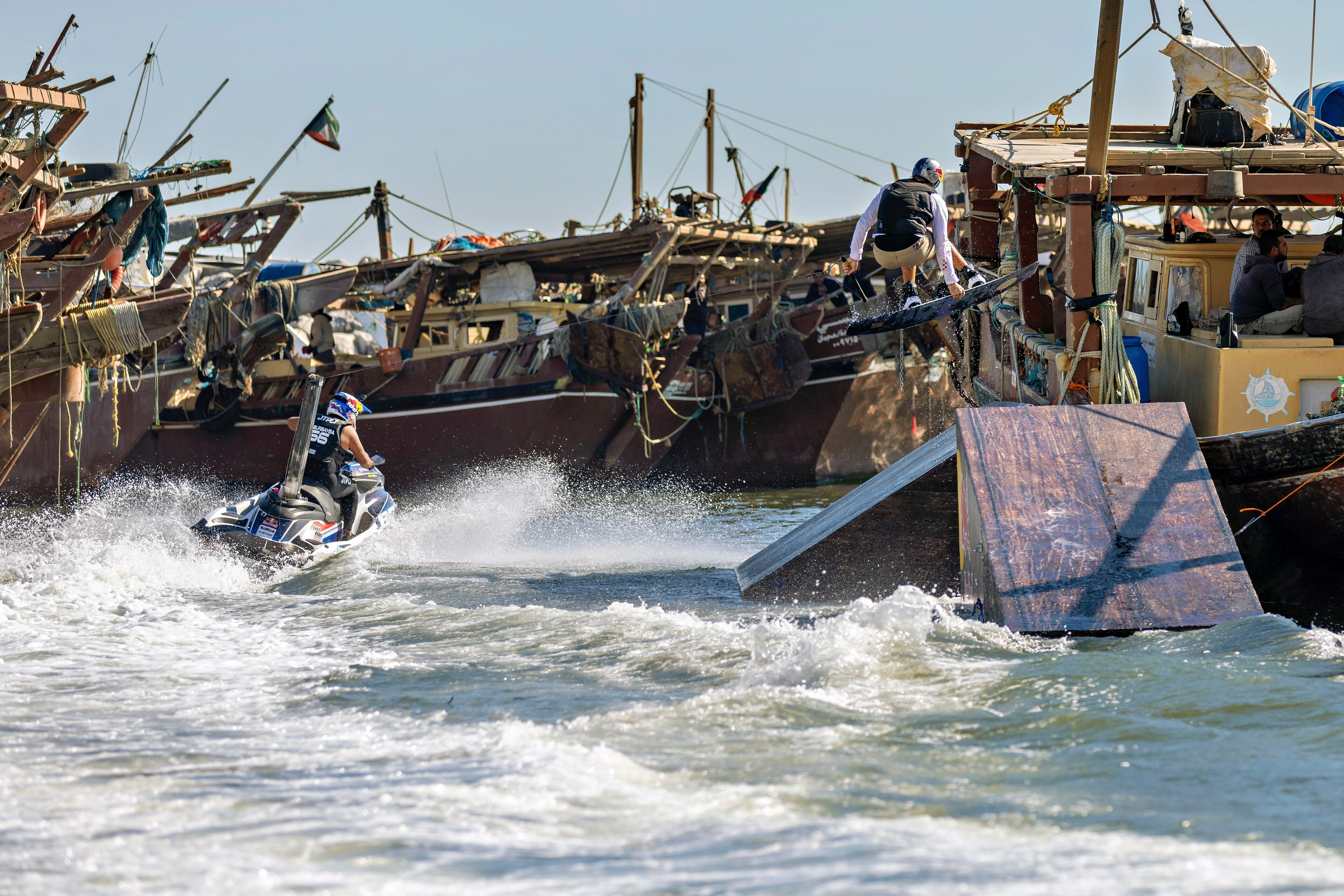 Wakeboarding athlete Dominik Gührs and Jetski World Champion Mohamad Burbayea shred the traditional fishing docks of Kuwait.